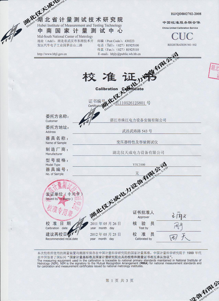 首頁 > 預防性檢測設備 > 鑒定證書 >